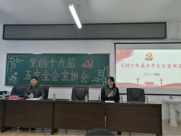为深入贯彻落实我党十九届五中全会精神在新形势发展下的需要,进一步加强对党员干部的领导力,做好新时期党员教育工作,公司纪委书记滕强于2020年11月25日下午一点五十分在综合楼306为英国上市公司365和计算机科学与技术学院全体教师讲授党的十九届五中全会宣讲会专题党课,本次党课由机电工程公司党总支副书记邓雨巍主持。