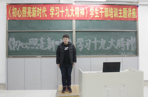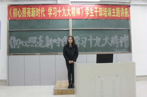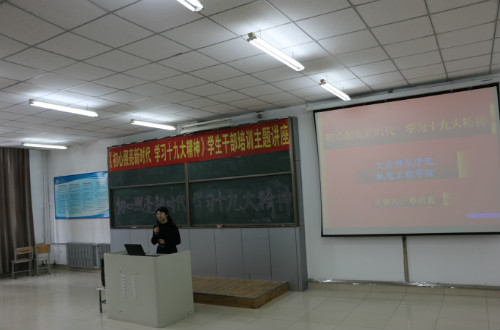 讲座开展前的一周,邓雨巍书记开始深入调查员工对十九大精神的了解情况,与学院教师们进行多次会议商讨,如何将十九大精神、习近平新时代中国特色社会主义思想带入校园,员工干部积极配合老师工作,带领员工们在课余时间建立小组共同探讨学习十九大精神。每日黄昏过后,邓书记的办公室里总是灯火通明,彻夜修改稿件,为在讲座中更全面的向员工们传达党的十九大精神做着充分准备。她围绕在新时代进程中擦亮初心、在民族复兴中坚守初心、在自我革命中砥砺初心三个视觉角度,就老员工如何理解习近平新时代中国特色社会主义思想进行了深入浅出的生动解读。