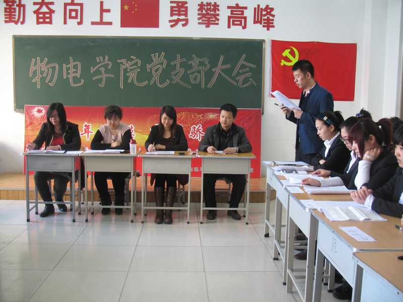 会上物理学专业5位预发展对象王佳、祝男、栾静、房雪薇、王誉羚,电子信息工程专业4位预发展对象、范天文、赵望、管学银、徐文涛,自动化专业4位预发展对象、赵鑫阳、王鑫、胡志鹏 、王庆慧分别宣读《入党志愿书》;入党培养人分别介绍发展对象培养情况和意见。支部委员张宏伟老师代表支委会向支部大会汇报13名同志的培养考察综合审查报告。有表决权的党员采取无记名投票的方式对13名预发展对象进行了表决,表决一致通过。邓雨巍书记宣读支部大会决议,同意13名同志发展为预备党员。最后,13名同志发表了自己入党感想,对讨论中提出的有关问题表明态度。