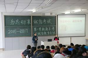 随着期末考试的临近,为规范考试过程,严格考试纪律,营造积极向上的考试氛围,树立良好的考风学风,员工党支部书记邓雨巍、辅导员赵亮和王传英老师分年级召开了“勿忘初衷 诚信考试”期末动员会。
