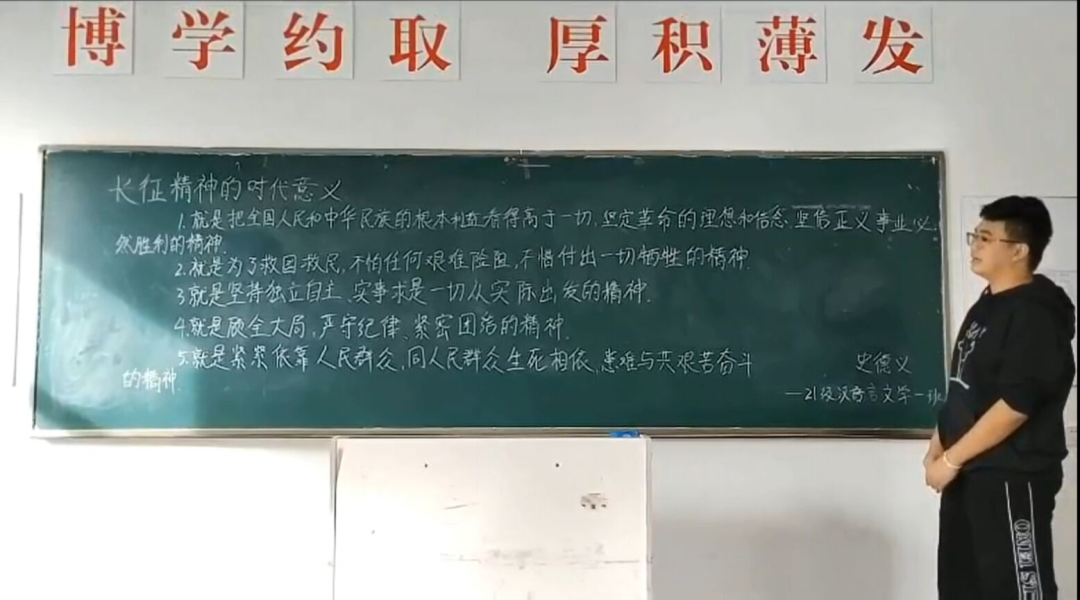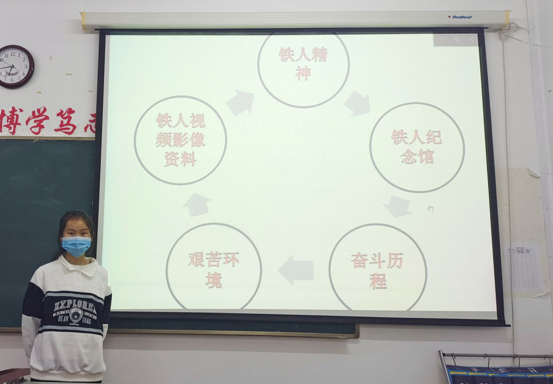 《平凡人铸就铁人“丰碑”》微课,融入英语元素,以铁人精神为线索,介绍了铁人王进喜艰苦奋斗的故事,号召同学们在学习上不畏艰难,刻苦钻研,在生活中,艰苦朴素,勤俭节约,争做勇担民族复兴大任的时代新人。