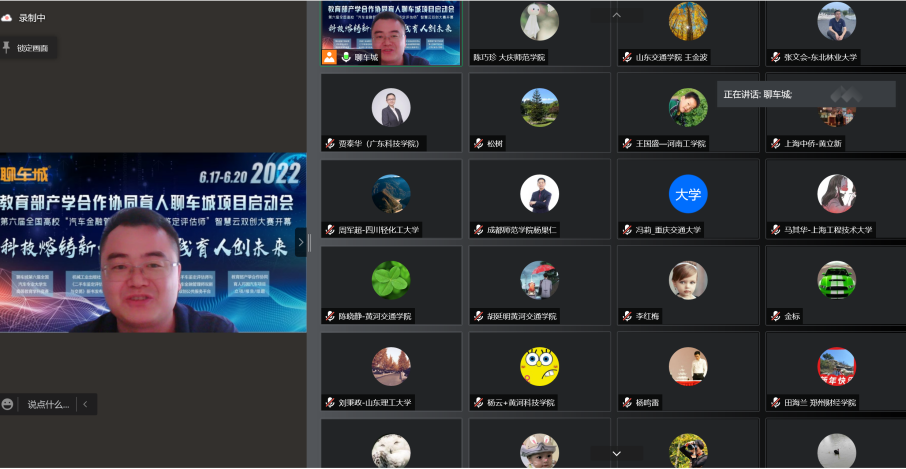 2022年6月18日,教育部产学合作协同育人聊车城项目启动会暨2022年全国高校汽车金融管理师与二手车鉴定评估师智慧云双创大赛开幕式如期举办。本届大会以“线上+线下”相结合的方式举办,线上通过腾讯会议室参会,并在重庆设立主会场。会议主题为“科技熔铸新金课·实践育人创未来”,会议共邀请来自全国各省市61名高校领导、教师及汽车产业学者、行业专家、名企高管参加。公司赵大伟老师、陈巧珍老师代表项目组成员参加了此次盛会,共话育人未来,传递时代强音。