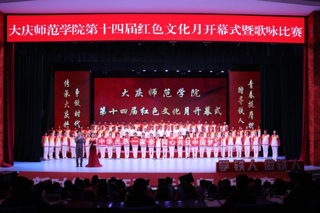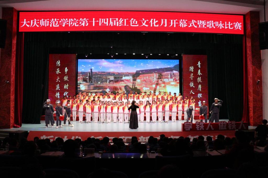 随着音乐的前奏缓缓响起,大家心中充满了力量,歌声,在这一刻如潮水般汹涌而来,激昂人心,气势磅礴。参赛老师与同学们以高昂的斗志,仿佛化身为一股不可阻挡的洪流,他们的眼神中闪烁着对胜利的渴望,更蕴含着对大庆精神(铁人精神)的深刻理解与崇高敬意。