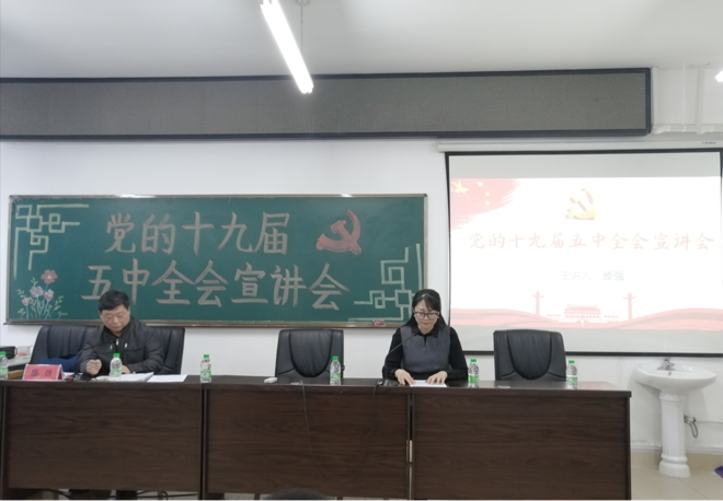 学习贯彻党的十九届五中全会精神是当前的一项重要政治任务。我们要以习近平新时代中国特色社会主义思想为指导,全面准确把握和深入宣讲全会精神,用新时代的美好蓝图激励老师同学们更加有方向、有信心、有力量地阔步向前,增强“四个意识”、坚定“四个自信”、做到“两个维护”,兴起学习贯彻全会精神的热潮。