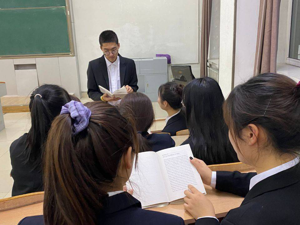 同学们选取了电视剧中的片段进行剧情展示,其中包括有朗诵和演讲。在班会讲台上的同学们声情并茂,充满热情的演译下,台下同学们对共产主义精神有了更加深刻的理解。