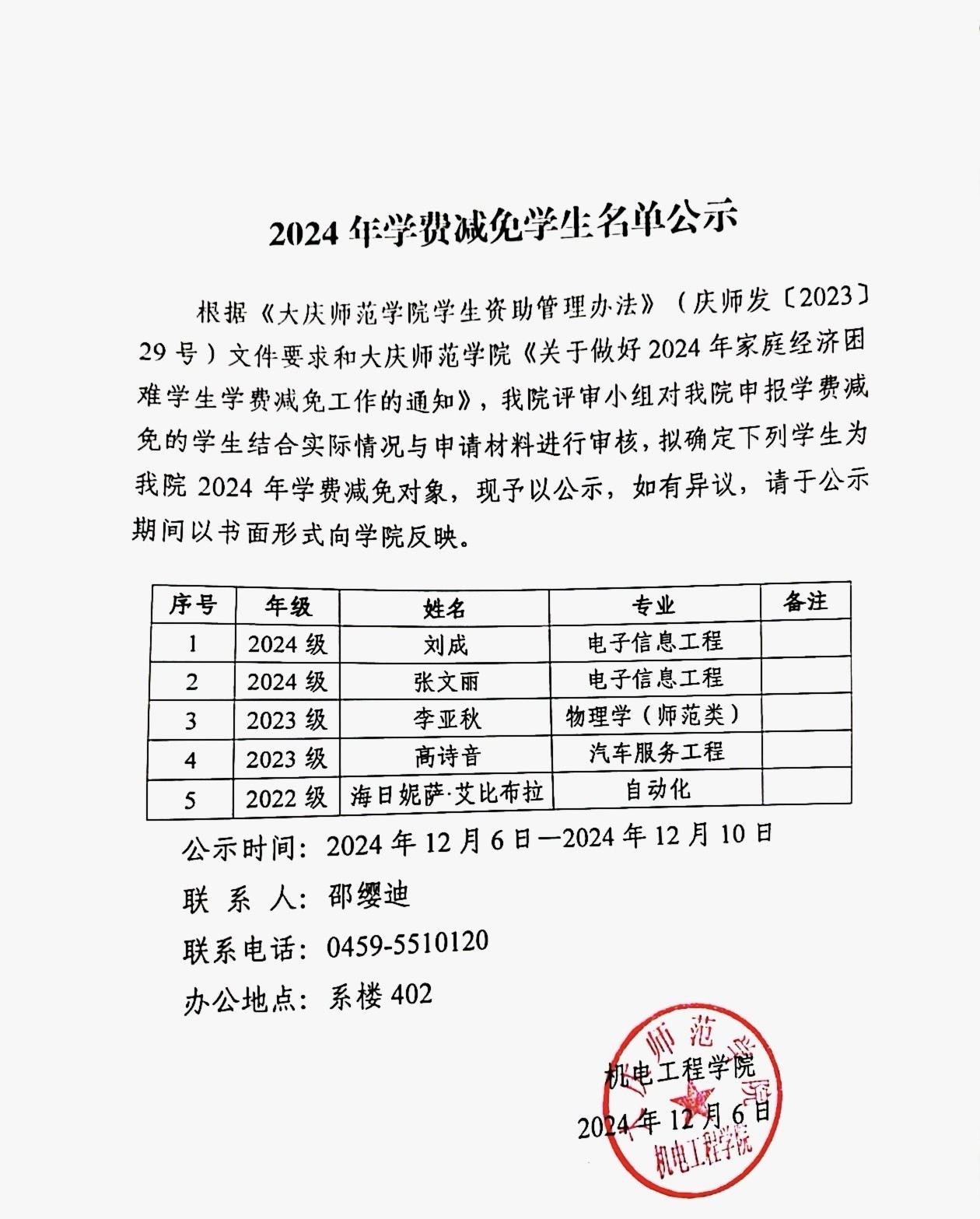 2024年学费减免员工名单公示