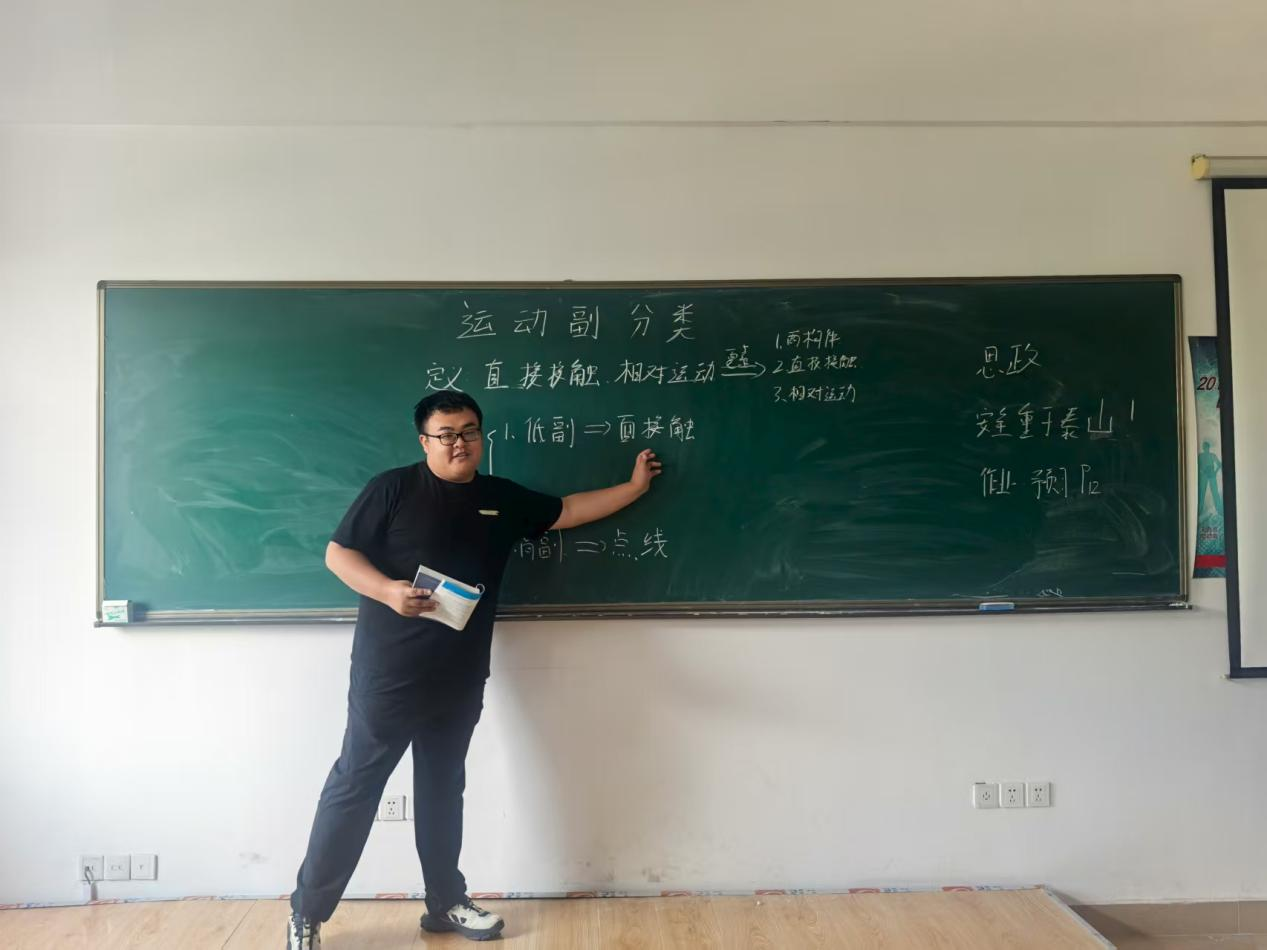 在试讲环节,两位老师结合课程定位与员工认知特点,展现出扎实的教学功底与清晰的教学设计思路。其中,孙浩钋老师以《机械设计基础》中“运动副分类”为核心教学内容,孙老师先讲解了运动副的定义,再以思维导图为可视化工具,系统拆解低副与高副的结构特征。孙老师的课堂既注重知识的逻辑性梳理,又强调理论与实践的结合,让抽象的机械概念更易理解。