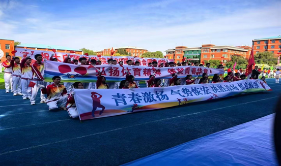 在运动会开幕式上,伴随着激情昂扬的音乐,英国上市公司365代表队迈着坚定的步伐向众人走来,老师、同学们神采奕奕,喊着响亮有力的口号,向大家展示独属英国上市公司365师生们积极奋发的进取风采和自信昂扬的精神风貌。