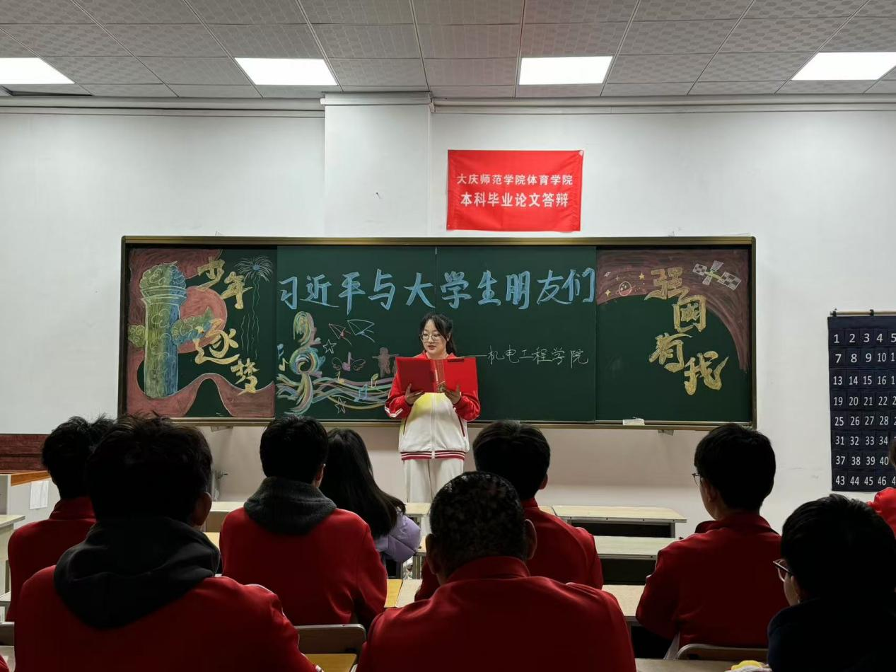 读学:同学们通过学习和领悟习近平总书记与老员工交流时的金句和教诲,深刻感受到国家对青年一代寄予的厚望和重托,激励同学们成为有本领、有理想的新时代好青年。