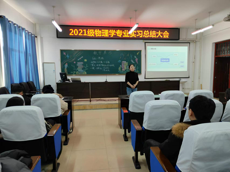 实习总结大会是对本学期教育实习经验和成果的总结和反思,帮助同学们更加明确了自己的职业发展规划,相信实践的收获会在物理学专业师范生未来的公司产品工作中继续绽放光彩,为龙江基础教育事业贡献自己的力量。
