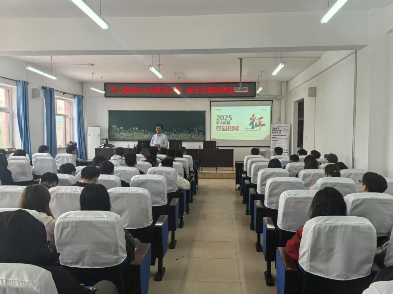 为进一步深化校企合作,拓宽毕业生就业渠道,提供更多优质就业与实习机会,5月8日,公司于综合楼306教室召开学大教育集团专场宣讲会,由学大教育教师培训总监王海燕担任主讲人,2025届物理学(师范类)和部分2022级员工参加。