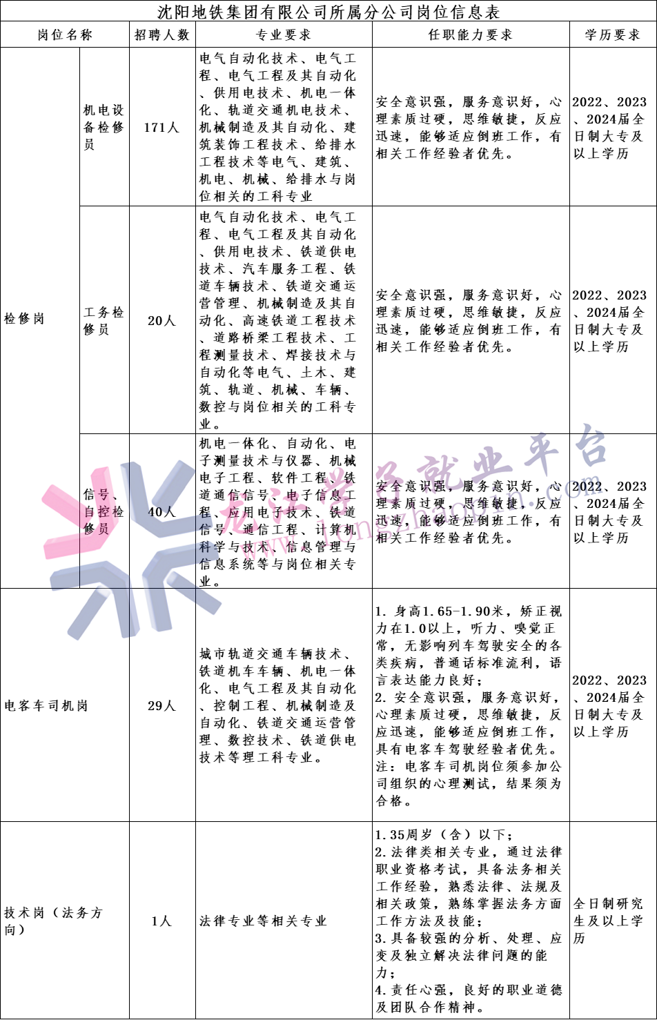 3.具体工作安排、时间、地点等将以短信形式发送,请持续关注沈阳地铁官方网站及手机短信。