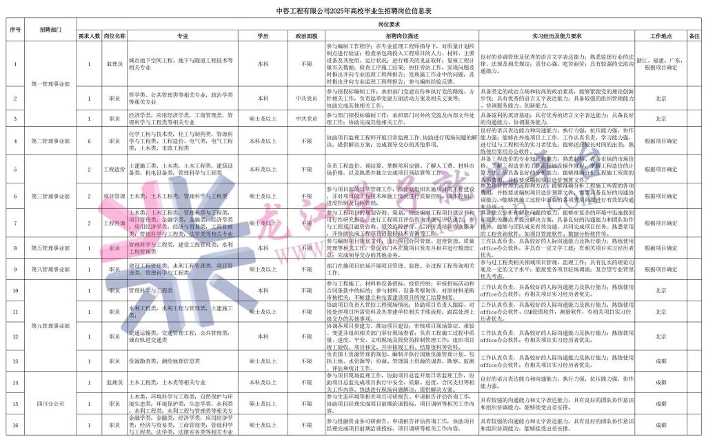 经过30余年的不懈努力,我们积累了丰富的工程管理经验,为各类工程建设项目保驾护航,“中咨管理”品牌成为行业的一面旗帜。我们崇尚简单、包容、共享的哲学理念,秉持创造价值、贡献社会的使命和专业创造精品、价值成就客户的核心价值观,为成为全过程工程管理咨询的领先者而奋斗。优秀的你值得更好的平台,加入我们,携手共创新篇章!