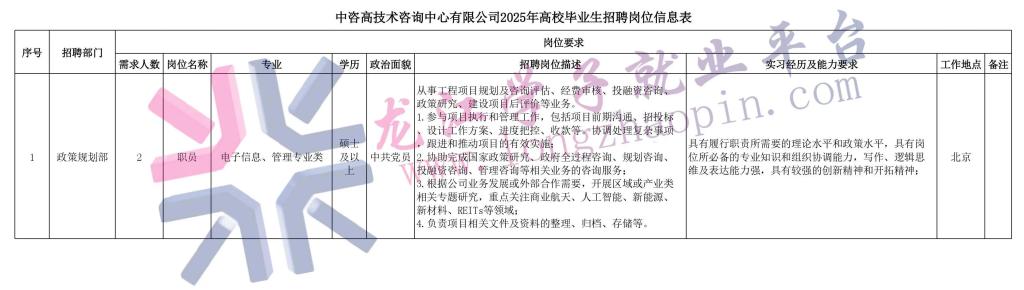 (二)遵纪守法、品行端正、身体健康、无不良记录;认同和遵循中咨公司的企业文化和“阳光咨询、透明评估”廉洁文化,具有较强的事业心和责任感,具备良好的职业素养,作风严谨、正派,有良好的团队合作精神和组织协调与沟通能力;为人诚信、工作勤奋、学习能力强,具有创新精神。